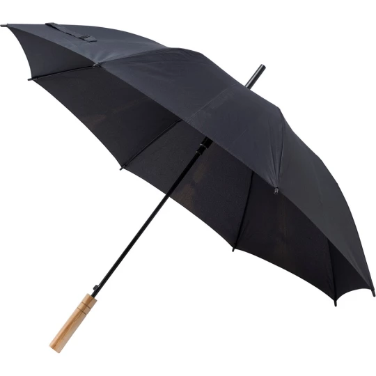 Parasol automatyczny RPET, 8 paneli, metalowa rama, bambusowa rączka, zapięcie na rzep