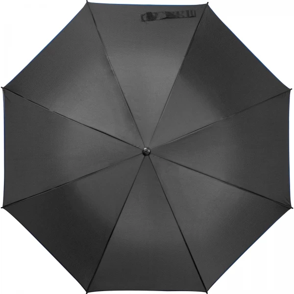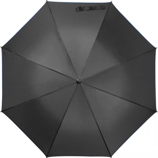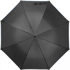 Czarny parasol automatyczny, wykonany z 190T Pongee, z kolorową lamówką oraz stelażem z włókna szklanego.