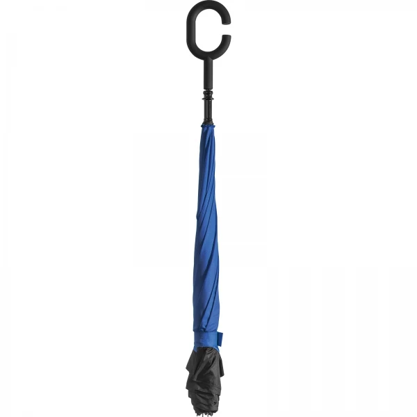 Parasol składany odwrotnie niż tradycyjny, dzięki czemu można np. bez problemu wsiąść do samochodu w trakcie deszczu. Parasol wykonany z podwójnej tkaniny typu pongee 190T i poliestru, posiada pasek na nadgarstek.