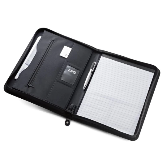 Teczka A4 wykonana z PU i mikrofibry, z wewnętrznymi kieszeniami, blok z 40 liniowanymi stronami (60 g/m²), miejscem na długopis (nie jest dołączony) i zapięciem na suwak. Metalowa płytka z możliwością personalizacji. 245 x 325 x 40 mm | Metalowa płytka: 16 x 45 mm