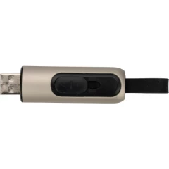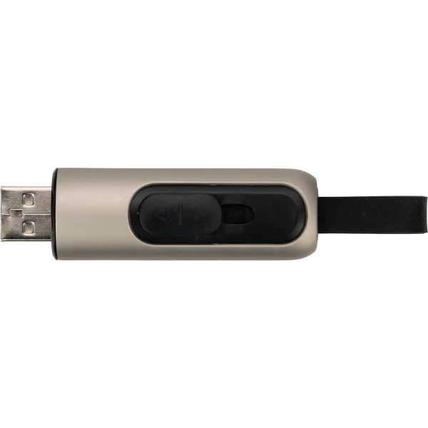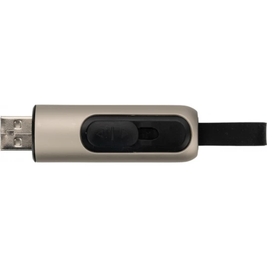 Pendrive wykonany z metalu i plastiku, z gumową pętelką i wysuwanym portem USB. Na zamówienie możliwość wyboru koloru, pojemności i opakowania. Dostępne pojemności: 8GB, 16GB, 32GB, 64GB, 128GB. Dostępne chipy: 2.0, 3.0. Minimalne zamówienie 100 szt.