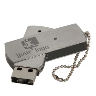 Pendrive obrotowy z łańcuszkiem, wykonany z metalu.Możliwość wyboru pojemności i opakowania.Dostępne pojemności: 8GB, 16GB, 32GB, 64GB, 128GB.Wymiary: 4,5 x 1,5 x 0,7 cm.Min. ilość zamówienia: 100 szt.