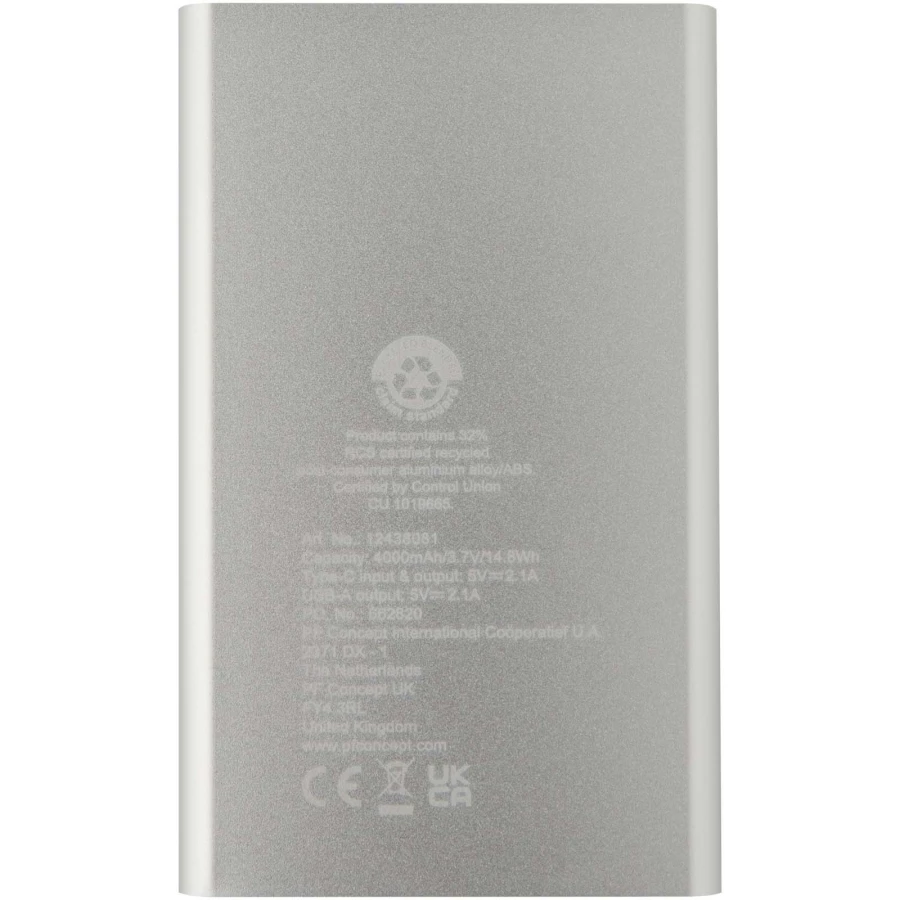 Pep powerbank o pojemności 4000 mAh Type-C z aluminium pochodzącego z recyklingu (12438081)