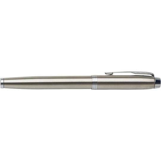 Pióro kulkowe Parker IM, wkład w czarnym kolorze, zapakowany w pudełko upominkowe, produkt wykonany z chromu
