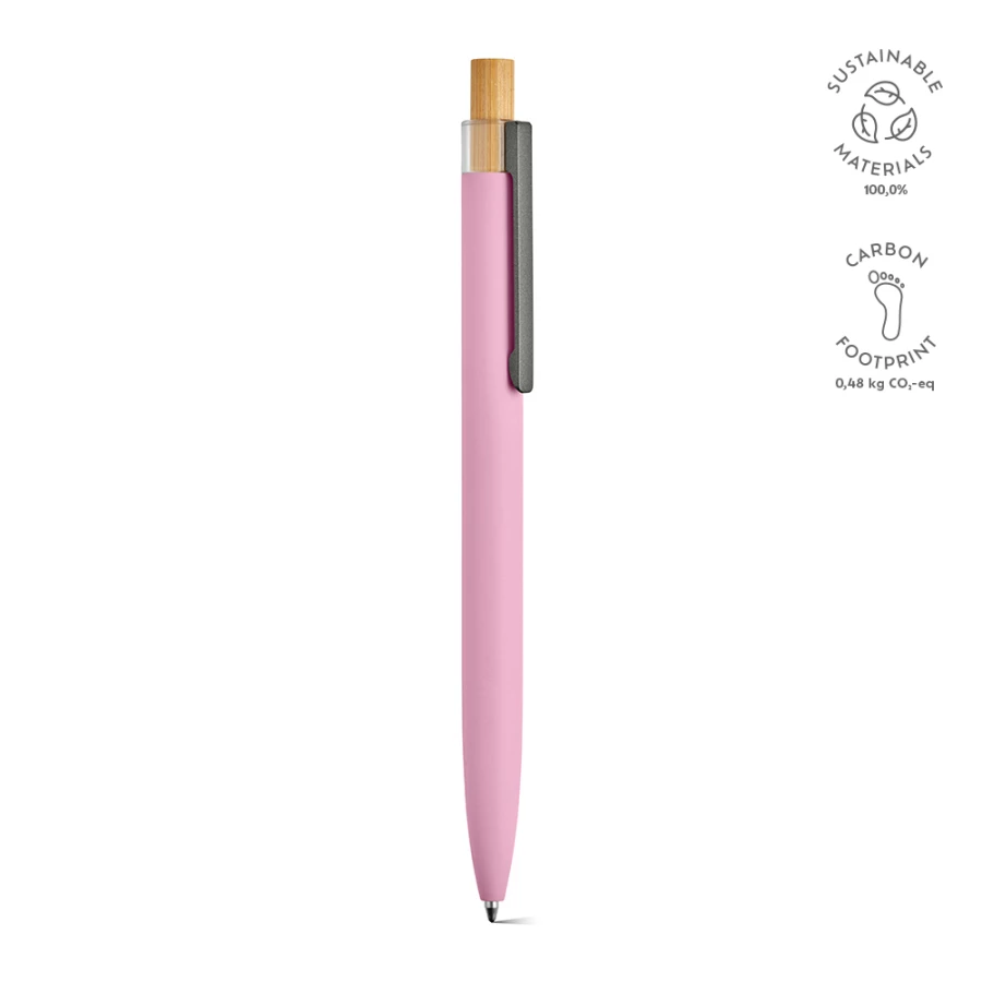 Ekologiczny długopis o przemyślanej konstrukcji z korpusem z aluminium pochodzącego z recyklingu i elementami z rPET i bambusa na górze. Posiada 1 km niebieskiego tuszu Dokumental®. Dostarczany w przyjaznym dla środowiska naturalnym pudełku typu kraft.