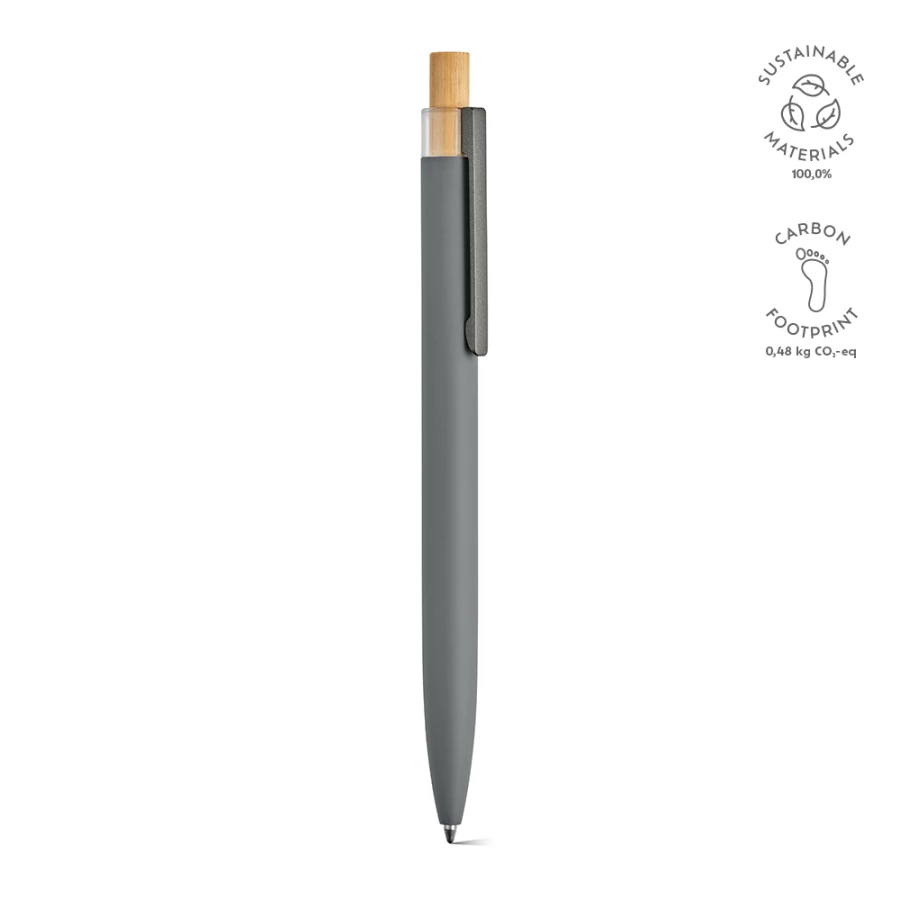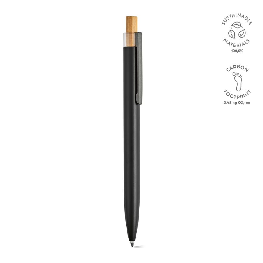 Ekologiczny długopis o przemyślanej konstrukcji z korpusem z aluminium pochodzącego z recyklingu i elementami z rPET i bambusa na górze. Posiada 1 km niebieskiego tuszu Dokumental®. Dostarczany w przyjaznym dla środowiska naturalnym pudełku typu kraft.