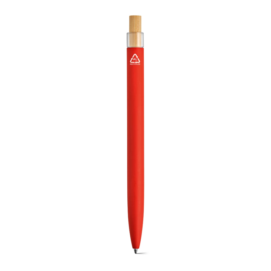 Ekologiczny długopis o przemyślanej konstrukcji z korpusem z aluminium pochodzącego z recyklingu i elementami z rPET i bambusa na górze. Posiada 1 km niebieskiego tuszu Dokumental®. Dostarczany w przyjaznym dla środowiska naturalnym pudełku typu kraft.