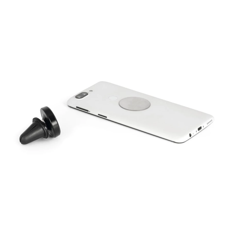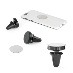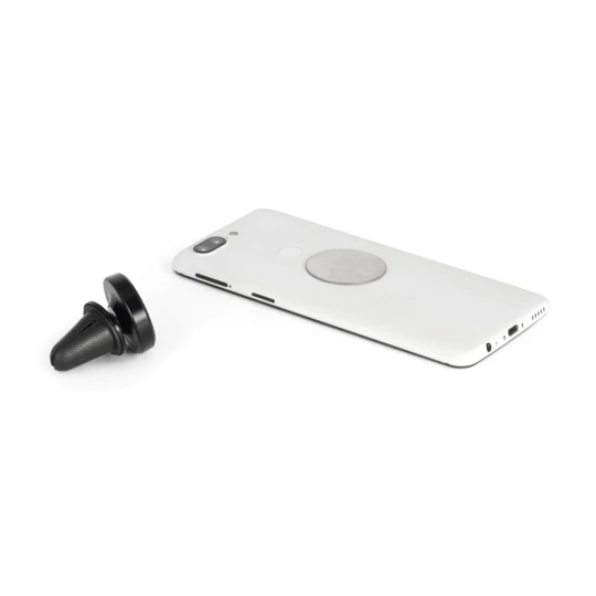 Magnetyczny uchwyt do smartfonów do samochodów z możliwością obrotu o 360º dla większej wszechstronności. Idealny do bezpiecznego korzystania z podstawowych funkcji, takich jak GPS lub rozmowy przez głośnik. Prosty system mocowania do kratki wentylacyjnej samochodu dla większego komfortu i bezpieczeństwa podczas korzystania z urządzenia.Materiał: ABS i aluminiumZawiera: uchwyt magnetyczny z naklejką do przyklejenia do smartfona lub etuiDostawa: białe pudełko prezentoweWymiary: ø35 x 44 mm