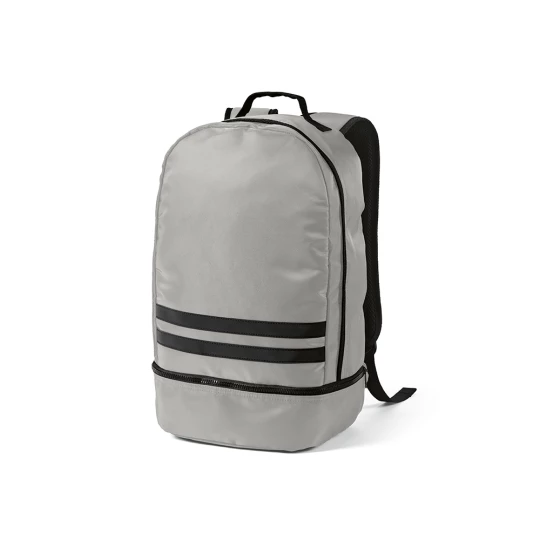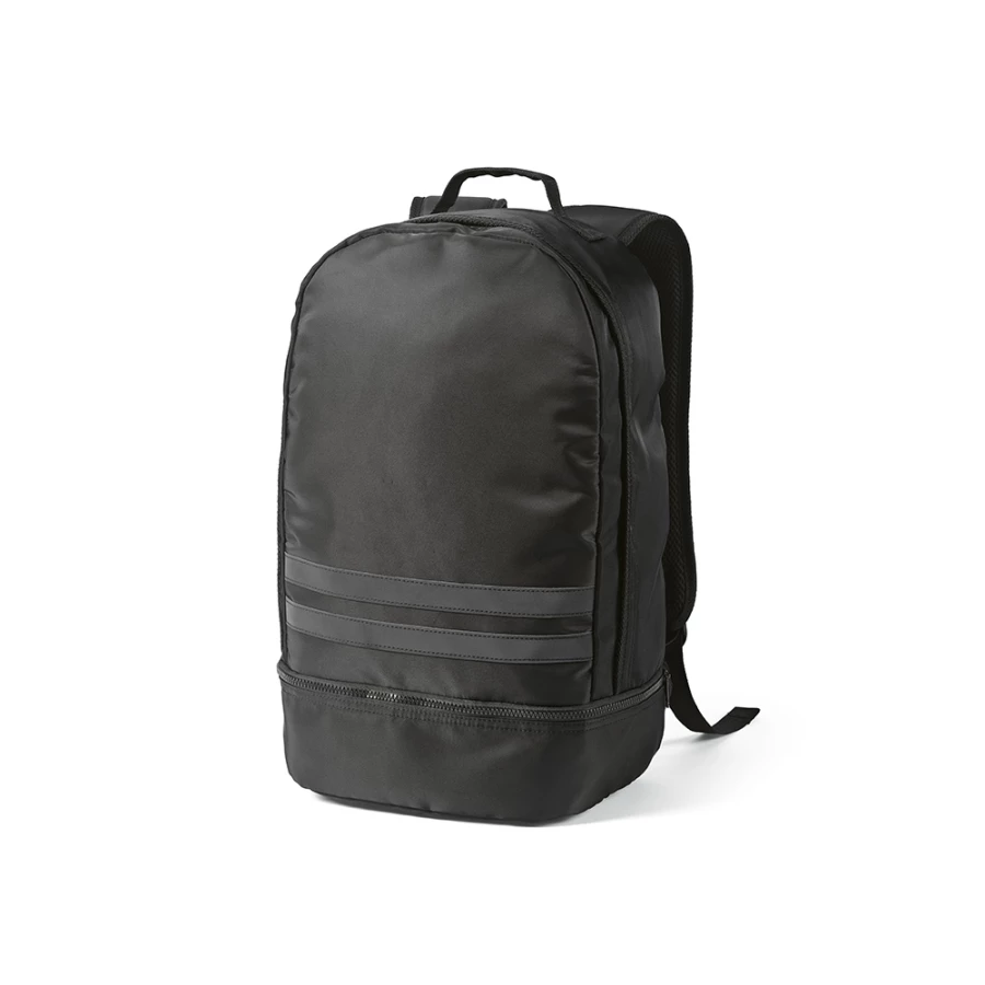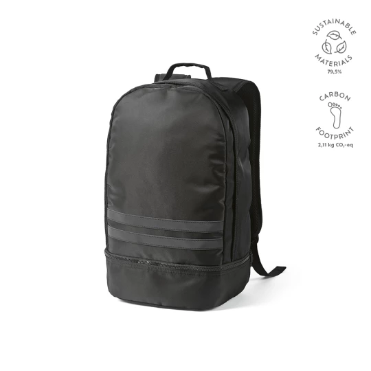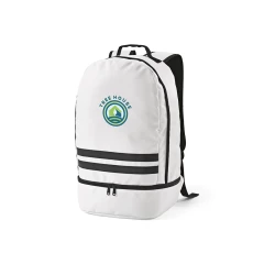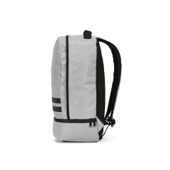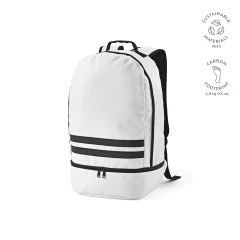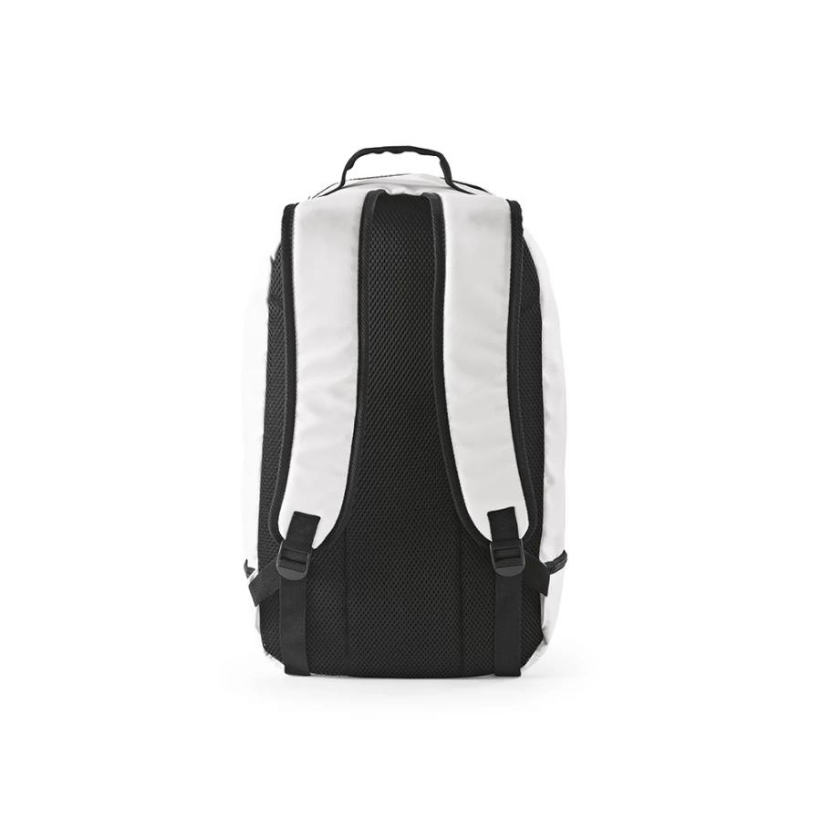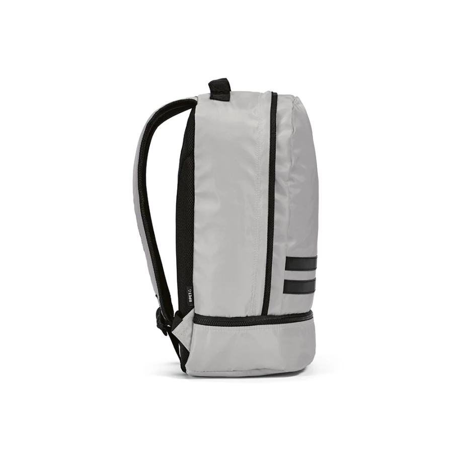 Wykonany z rPET, ten 25-litrowy plecak został zaprojektowany w oparciu o funkcjonalność. Z wyściółką pleców, wzmocnionym górnym uchwytem i dwoma czarnymi odblaskowymi paskami z przodu dla bezpieczeństwa. Na spodzie znajduje się oddzielna kieszeń idealna na buty. Projekt ukierunkowany na funkcjonalność.