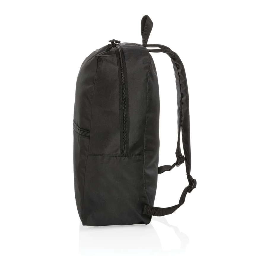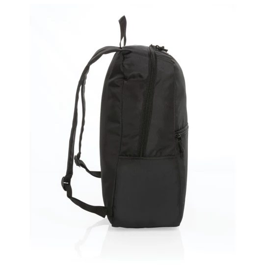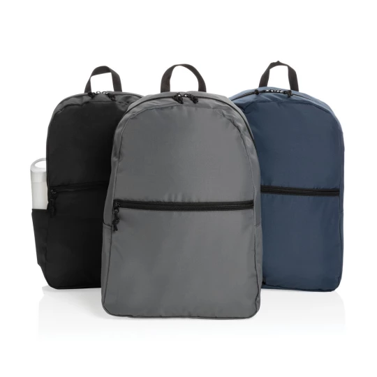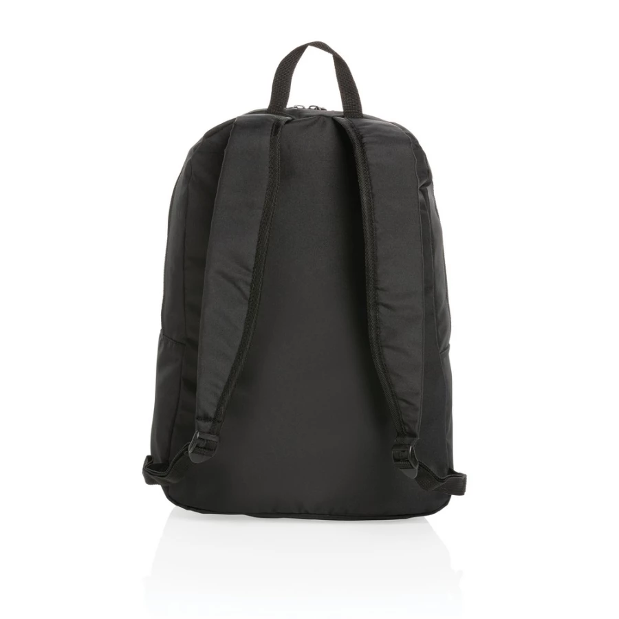 Plecak, przestronna przegroda główna, z przodu kieszeń zamykana na zamek, kieszeń na butelkę z boku, wykonany z 300D RPET, do którego produkcji zostało ponownie wykorzystanych 11,5 butelek PET (500 ml), dzięki zastosowaniu technologii śledzącej AWARE™ wykorzystane włókna są identyfikowalne z pochodzenia oraz wyprodukowane zostały zgodnie z ideą zrównoważonego rozwoju, 2% wpływów z każdego sprzedanego produktu z kolekcji Impact jest przekazywane na rzecz Water.org