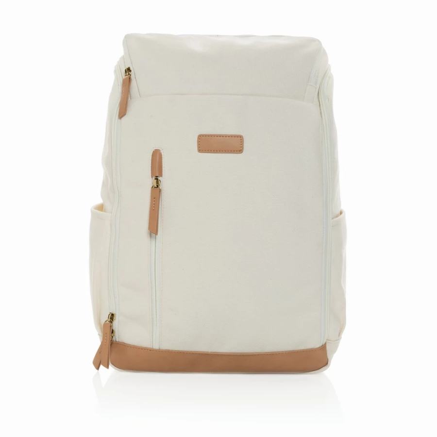 Plecak na laptopa 15", przestronna przegroda główna, wykonany z mieszanki 60% bawełny z recyklingu i 40% poliestru z recyklingu, dzięki zastosowaniu technologii śledzącej AWARE™ wykorzystane włókna są identyfikowalne z pochodzenia, 2% wpływów z każdego sprzedanego produktu z kolekcji Impact jest przekazywane na rzecz Water.org