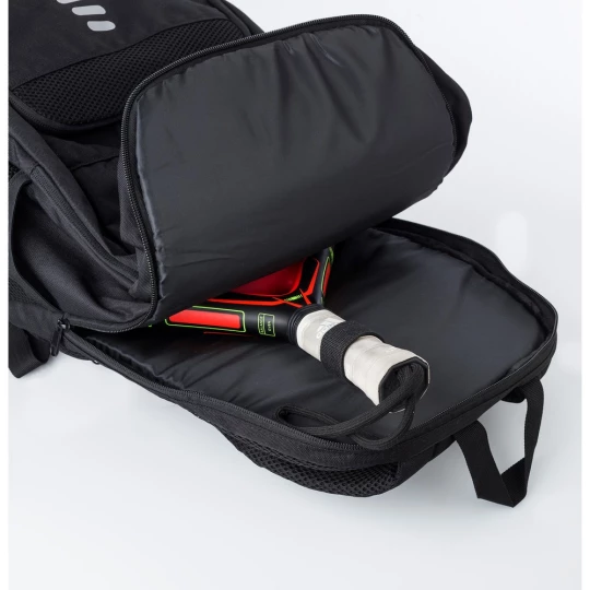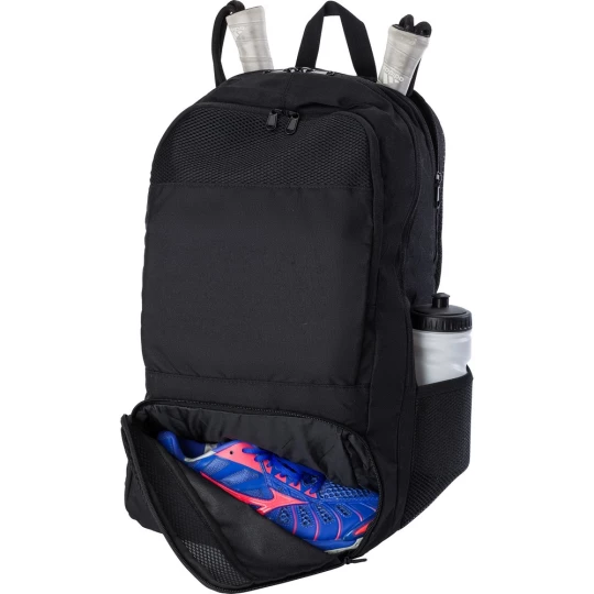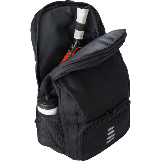Plecak na laptopa 15", wykonany z RPET, nieprzemakalny, przegroda na rakiety tenisowe, kieszeń chroniąca przed kieszonkowcami, kieszeń na buty, kieszenie boczne, regulowane paski na ramię