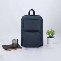 Plecak na laptopa, wyposażony w wyściełaną kieszeń na laptopa 15" i tablet 10", miękki tył zwiększający komfort użytkowania i regulowane paski na ramię umożliwiające dopasowanie ich długości do własnych preferencji, idealny do przechowywania sprzętu elektronicznego i codziennego użytku, produkt wykonany z poliestru 600D RPET