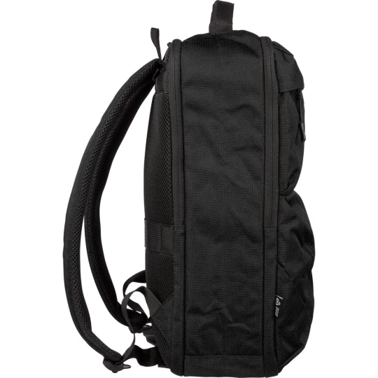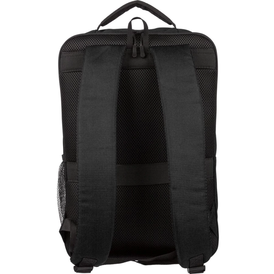 Plecak na laptopa 15" o pojemności 20 litrów, kieszeń główna zapinana na zamek, przegroda na laptopa 15", dwie małe kieszenie przednie zapinane na zamek, uchwyt ułatwiający noszenie, kieszeń boczna z siatką, wentylowane paski do noszenia na ramieniu, pasek do przymocowania do walizki, ikona OBP na metce, produkt wykonany z RPET 300D