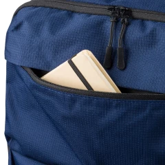 Plecak na laptopa 15" o pojemności 20 litrów, kieszeń główna zapinana na zamek, przegroda na laptopa 15", dwie małe kieszenie przednie zapinane na zamek, uchwyt ułatwiający noszenie, kieszeń boczna z siatką, wentylowane paski do noszenia na ramieniu, pasek do przymocowania do walizki, ikona OBP na metce, produkt wykonany z RPET 300D