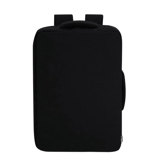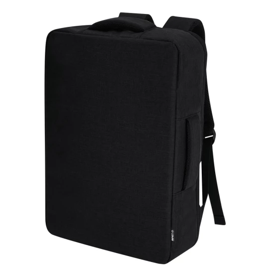 Plecak na laptopa 15", posiada miękką przegrodę na laptopa i przegrodę na tablet 10", miękki tył zwiększający komfort użytkowania i regulowane paski na ramię umożliwiające dopasowanie ich długości do własnych preferencji, produkt wykonany z poliestru 300D RPET