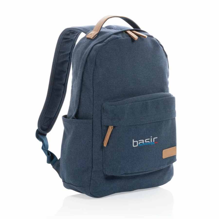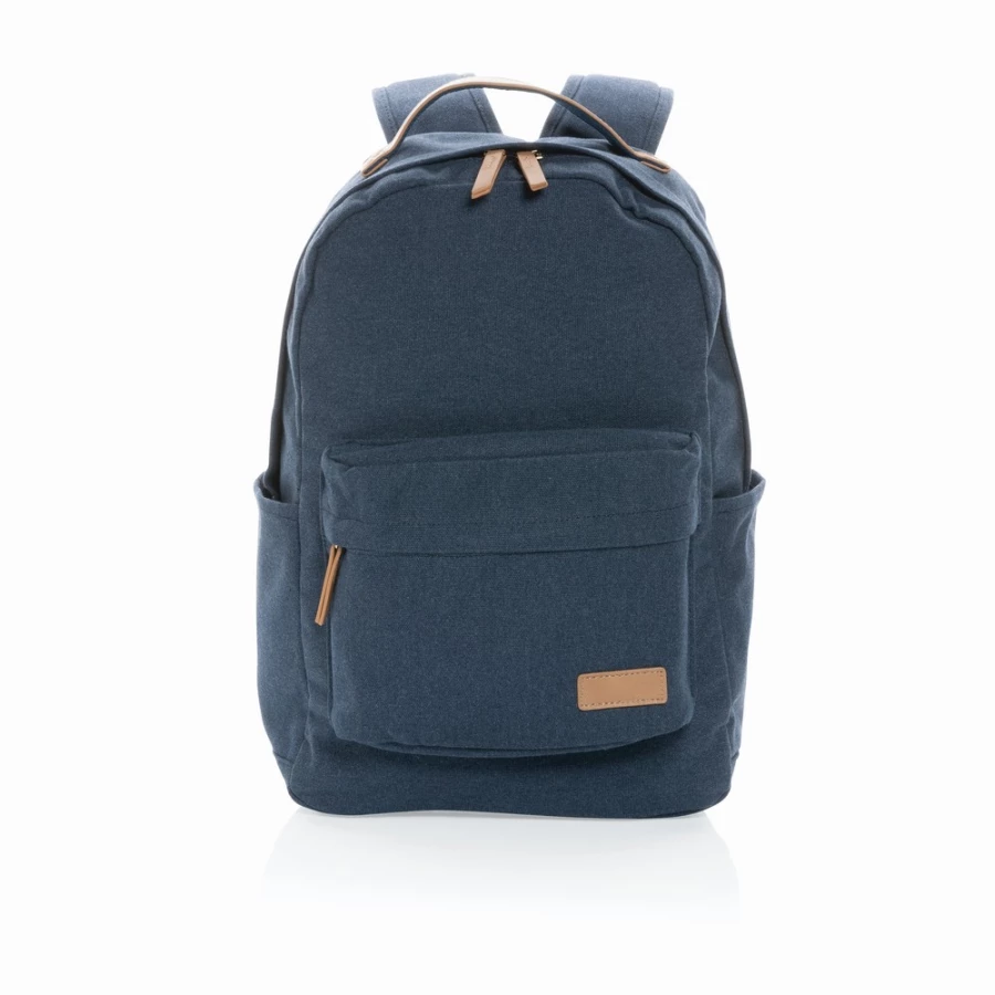 Plecak na laptopa 14", przestronne kieszeń z przodu i z tyłu, wykonany z mieszanki 60% bawełny z recyklingu i 40% poliestru z recyklingu, dzięki zastosowaniu technologii śledzącej AWARE™ wykorzystane włókna są identyfikowalne z pochodzenia, 2% wpływów z każdego sprzedanego produktu z kolekcji Impact jest przekazywane na rzecz Water.org