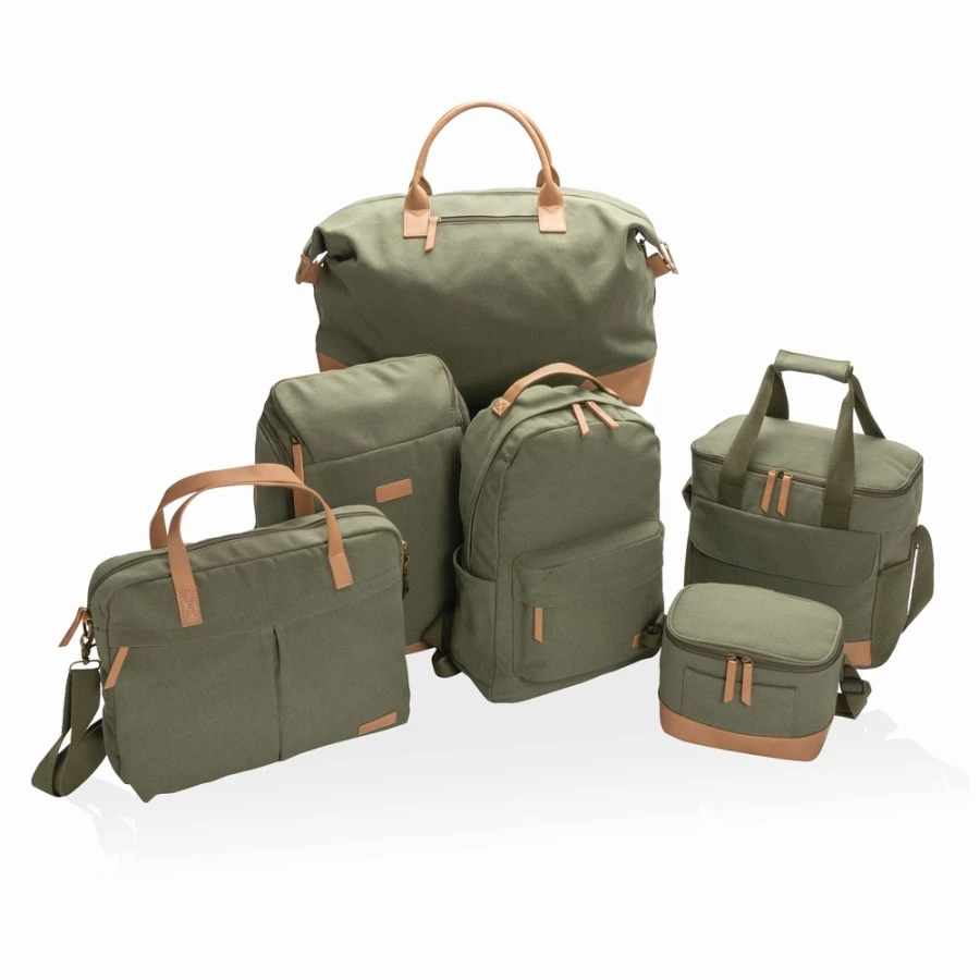 Plecak na laptopa 14", przestronne kieszeń z przodu i z tyłu, wykonany z mieszanki 60% bawełny z recyklingu i 40% poliestru z recyklingu, dzięki zastosowaniu technologii śledzącej AWARE™ wykorzystane włókna są identyfikowalne z pochodzenia, 2% wpływów z każdego sprzedanego produktu z kolekcji Impact jest przekazywane na rzecz Water.org