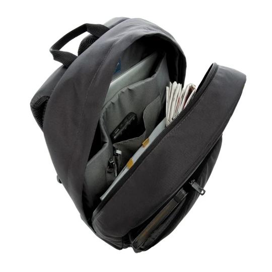 Plecak na laptopa 15,6", przestronna przegroda główna z miejscem na laptopa, wewnątrz kieszeń na drobne akcesoria i pętle na przybory do pisania, kieszeń na zamek z przodu, tkanina zewnętrzna i poszewka wewnętrzna wykonane z pochodzącego z poliestru AWARE™ RPET, który został wykonany z butelek PET pochodzących z recyklingu z identyfikowalnym źródłem, produkt został wykonany z 33 butelek plastikowych poddanych recyklingowi, 2% zysku ze sprzedaży każdego produktu jest przekazywane na rzecz fundacji Water.org