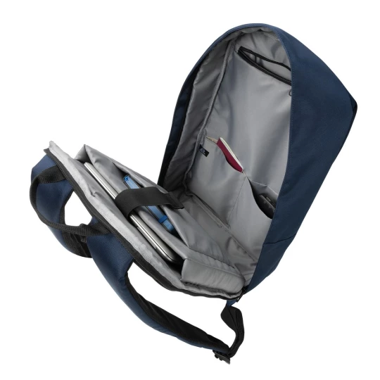 Plecak na laptopa 15,6", przestronna przegroda główna z miejscem na laptopa, 2 kieszenie RFID, zewnętrzna i wewnętrzna część wykonana z poliestru z recyklingu do produkcji którego zostało ponownie wykorzystanych 32,9 butelek PET (500 ml), dzięki zastosowaniu technologii AWARE™ wykorzystane materiały są identyfikowalne z pochodzenia, 2% wpływów z każdego sprzedanego produktu z kolekcji Impact jest przekazywane na rzecz Water.org, nie zawiera PVC