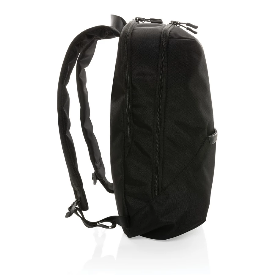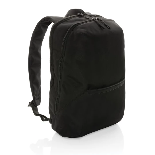 Plecak na laptopa 15,6", minimalistyczny design, zewnętrzna i wewnętrzna część wykonana z poliestru z recyklingu do produkcji którego zostało ponownie wykorzystanych 32,7 butelek PET (500 ml), dzięki zastosowaniu technologii AWARE™ wykorzystane materiały są identyfikowalne z pochodzenia, 2% wpływów z każdego sprzedanego produktu z kolekcji Impact jest przekazywane na rzecz Water.org, nie zawiera PVC