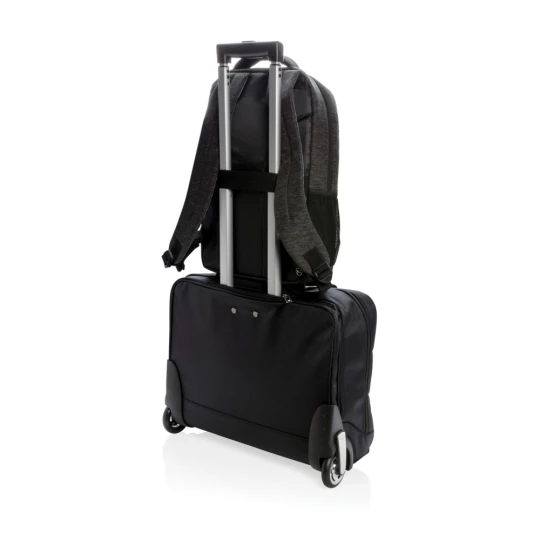 Plecak z miękką przegrodą na laptopa 15,6", wykonany z wytrzymałego poliestru 900D, przestronna przegroda główna, przednia kieszeń na zamek, dopasowane paski zwiększają komfort noszenia, posiada pasek do zamocowania na walizce, nie zawiera PVC, ślad węglowy produktu: 3,82 kg CO2