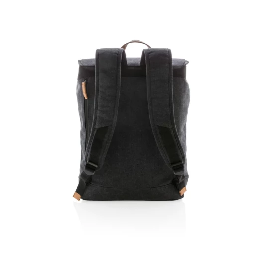 Plecak z miękką przegrodą na laptopa 15,6", wykonany z wytrzymałego płótna, pokrywa górna zamykana na paski z magnetycznymi klamrami, nie zawiera PVC, ślad węglowy produktu: 8,47 kg CO2