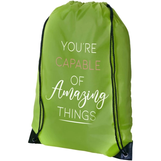 Plecak Oriole jest łatwy do wręczenia jako prezent promujący markę lub kampanię marketingową. Ten lekki plecak jest przyjazny dla budżetu, łatwy do noszenia na plecach lub na ramieniu i oferuje wystarczająco dużo miejsca na dodanie logo lub innych wiadomości. Sznurek ściągający ułatwia otwieranie i zamykanie, a materiał poliestrowy 210D jest mocny i trwały.