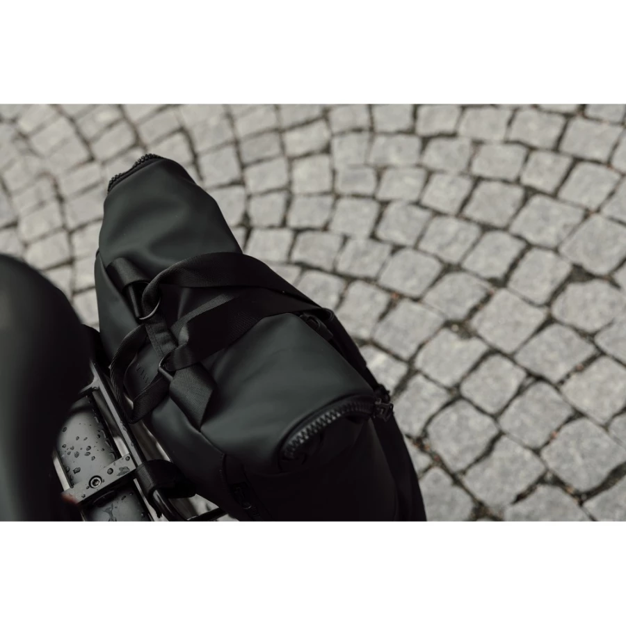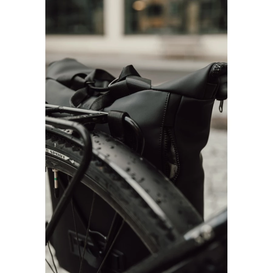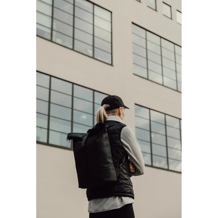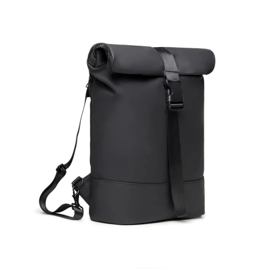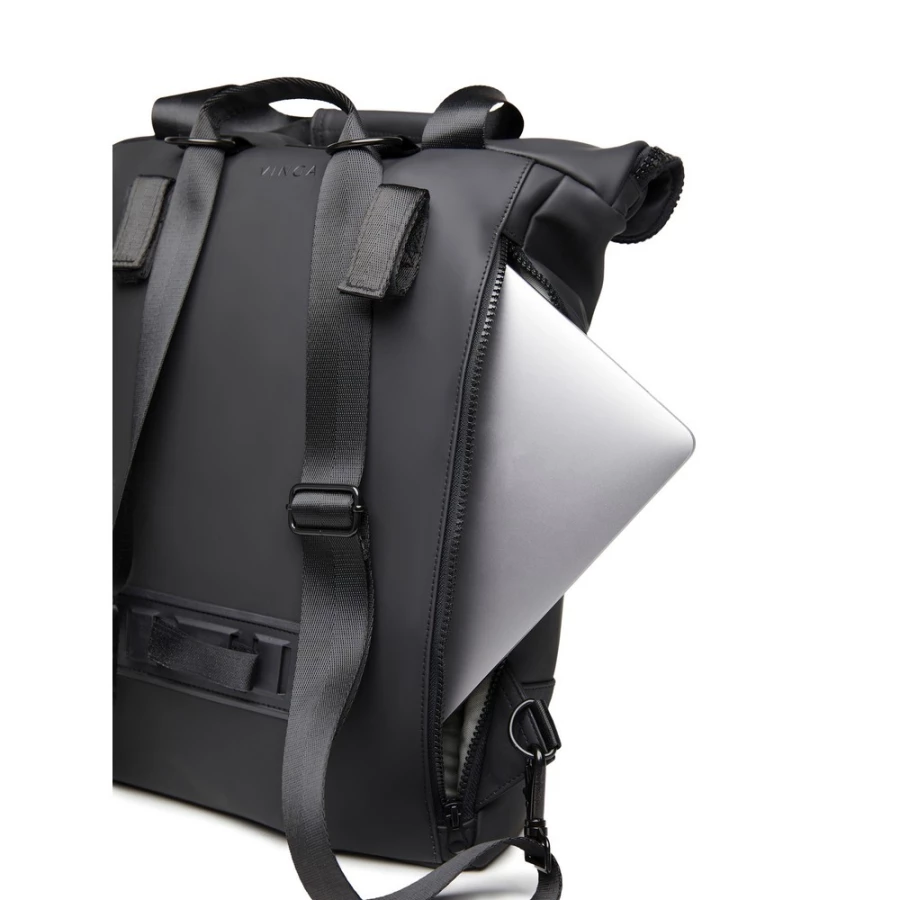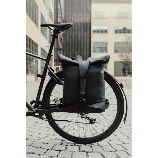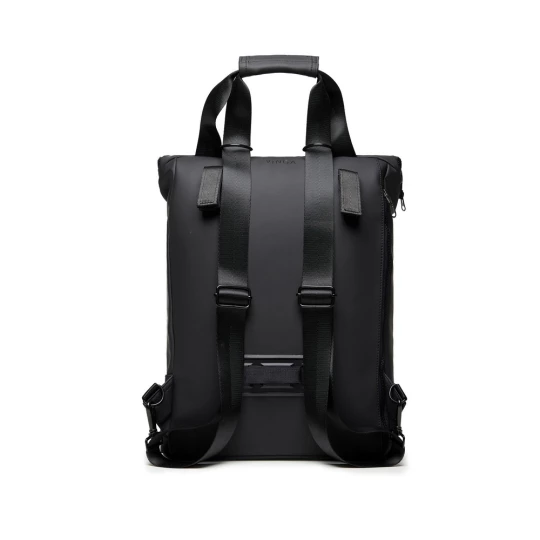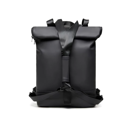 Plecak, wykonany z PU, dzięki specjalnej konstrukcji może być używany zarówno jako plecak jak i jako torba na ramię, wyściełana przegroda na laptopa, możliwość zamocowania do ramy roweru