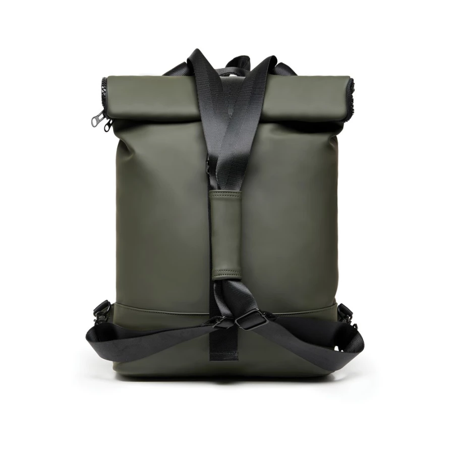 Plecak, wykonany z PU, dzięki specjalnej konstrukcji może być używany zarówno jako plecak jak i jako torba na ramię, wyściełana przegroda na laptopa, możliwość zamocowania do ramy roweru