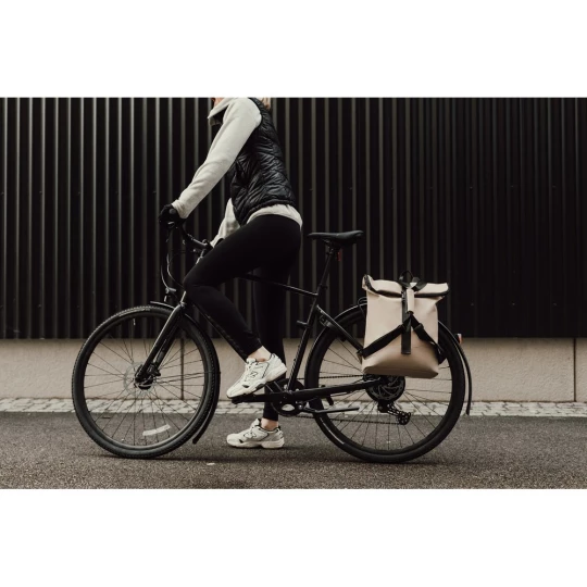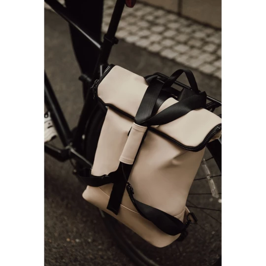 Plecak, wykonany z PU, dzięki specjalnej konstrukcji może być używany zarówno jako plecak jak i jako torba na ramię, wyściełana przegroda na laptopa, możliwość zamocowania do ramy roweru