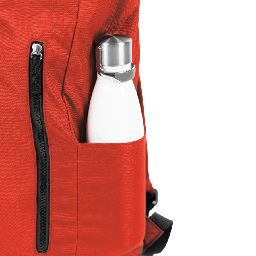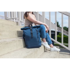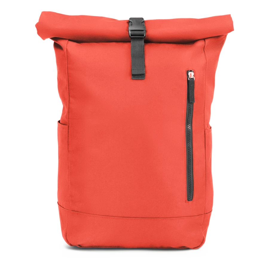 Plecak z przednią kieszenią i główną przegrodą na zamek błyskawiczny, wykonany z RPET, zgodny z certyfikatem GRS (Global RecycIed Standard), 2 kieszenie boczne, rozwijalna główna kieszeń zamykana na klamrę, która umożliwia zwiększanie pojemności plecaka oraz lepiej chroni przed czynnikami atmosferycznymi po zwinięciu, regulowane paski na ramię