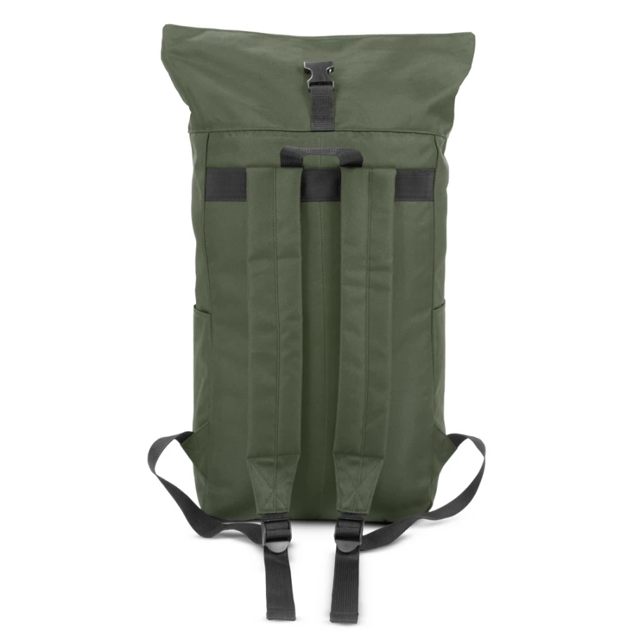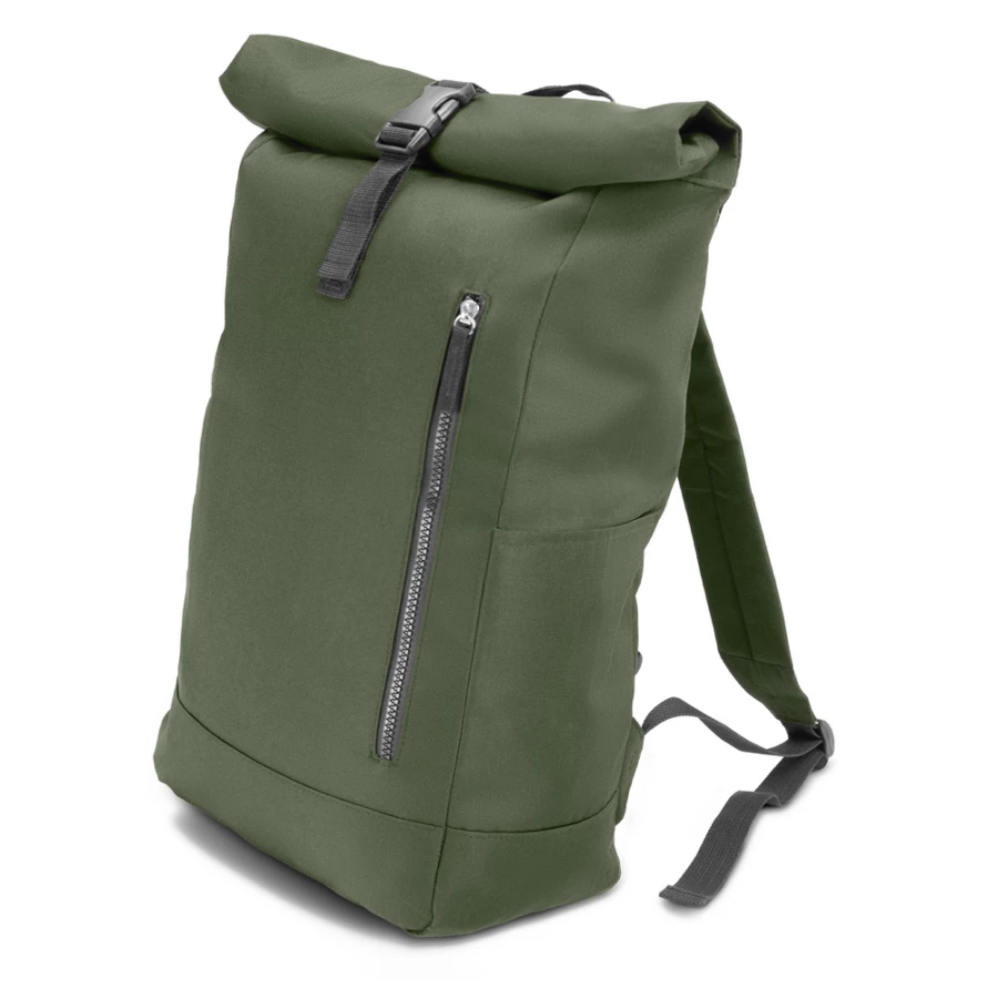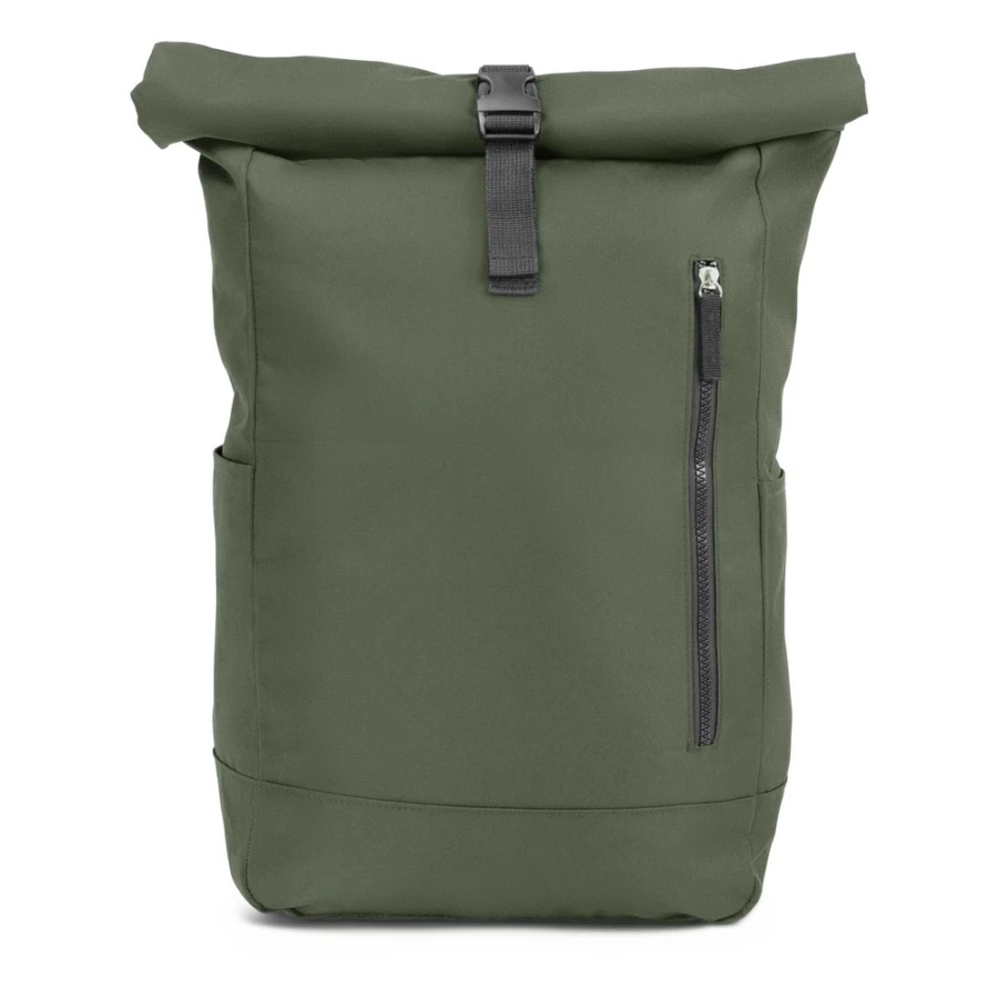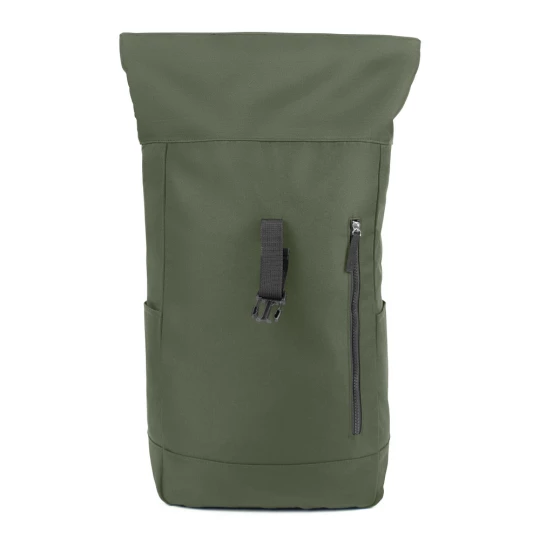 Plecak z przednią kieszenią i główną przegrodą na zamek błyskawiczny, wykonany z RPET, zgodny z certyfikatem GRS (Global RecycIed Standard), 2 kieszenie boczne, rozwijalna główna kieszeń zamykana na klamrę, która umożliwia zwiększanie pojemności plecaka oraz lepiej chroni przed czynnikami atmosferycznymi po zwinięciu, regulowane paski na ramię