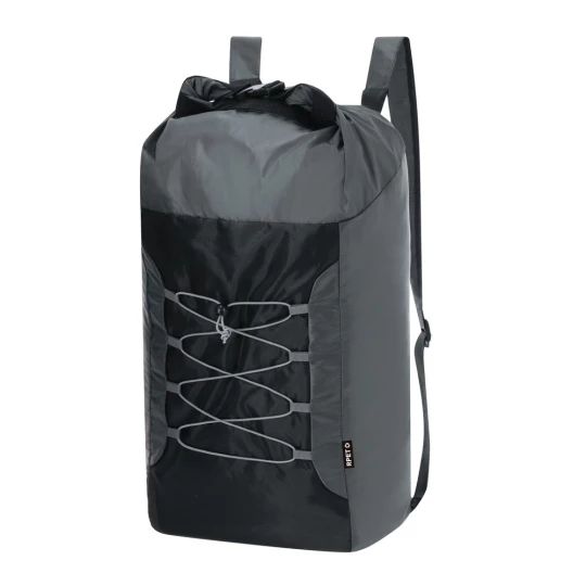Plecak, posiada regulowane paski na ramię umożliwiające dopasowanie ich długości do własnych preferencji, elastyczny ściągacz z przodu, produkt wykonany z poliestru 210D RPET i ripstop