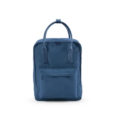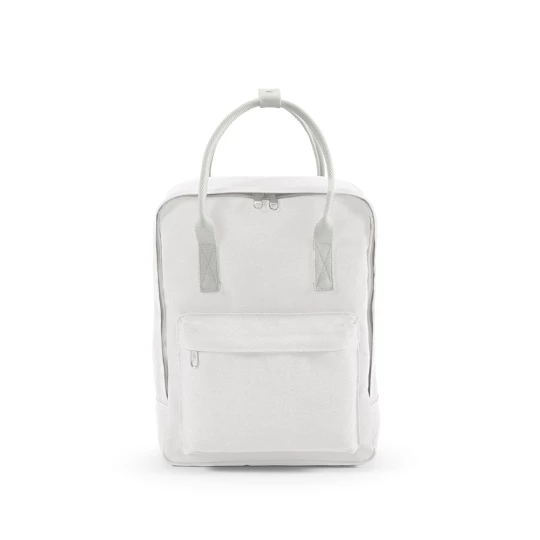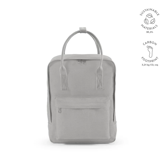 Wykonany z bawełnianego płótna z recyklingu (450 g/m²), ten plecak o pojemności 18 litrów jest przykładem zrównoważonego rozwoju. Posiada dwa uchwyty umieszczone dla większej wygody i paski na ramię z rPET. Posiada również przednią kieszeń. Zapakowany w torbę PE z recyklingu.