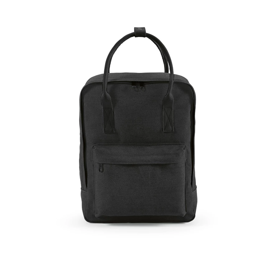Wykonany z bawełnianego płótna z recyklingu (450 g/m²), ten plecak o pojemności 18 litrów jest przykładem zrównoważonego rozwoju. Posiada dwa uchwyty umieszczone dla większej wygody i paski na ramię z rPET. Posiada również przednią kieszeń. Zapakowany w torbę PE z recyklingu.