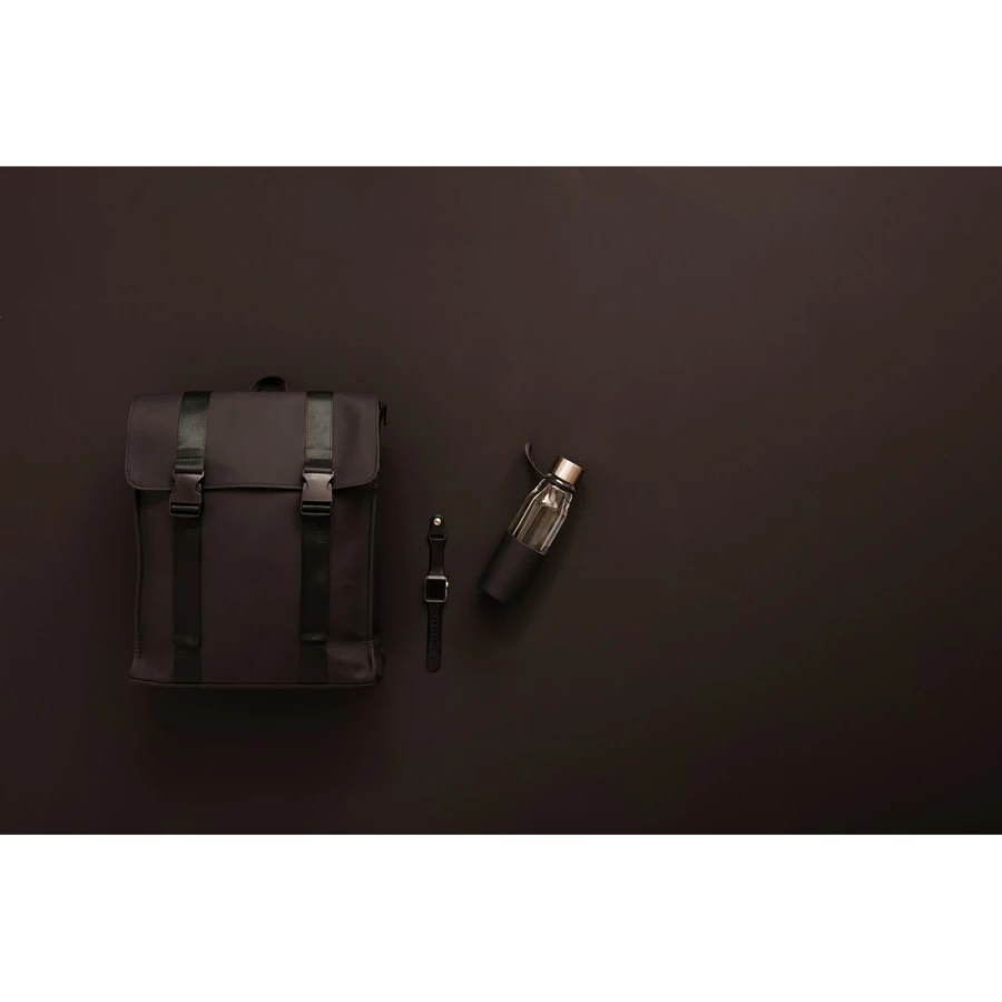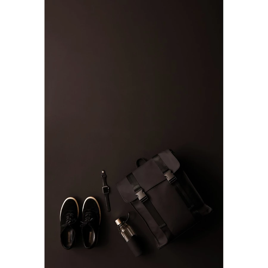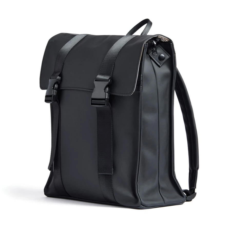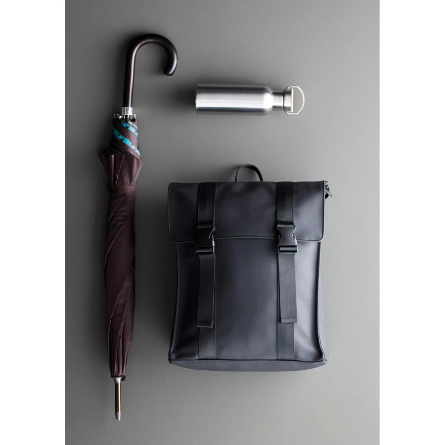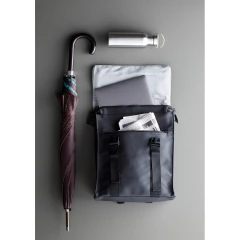 Plecak, wykonany z wodoodpornego materiału, kieszeń na zamek z boku, ukryta kieszeń z tyłu, regulowane paski na ramiona