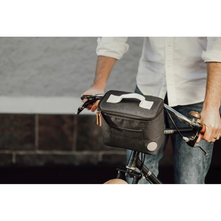 Termoizolacyjna torba rowerowa, mocowanie do kierownicy roweru, kieszeń z przodu, wykonana w 50% z RPET