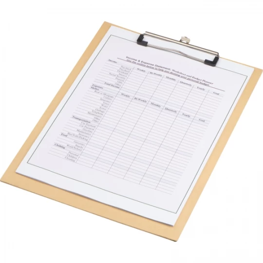 Podkładka do notowania o formacie A4, wykonana z przyjaznego dla środowiska kartonu, z metalowym klipsem do papieru i kółkiem do zawieszania.