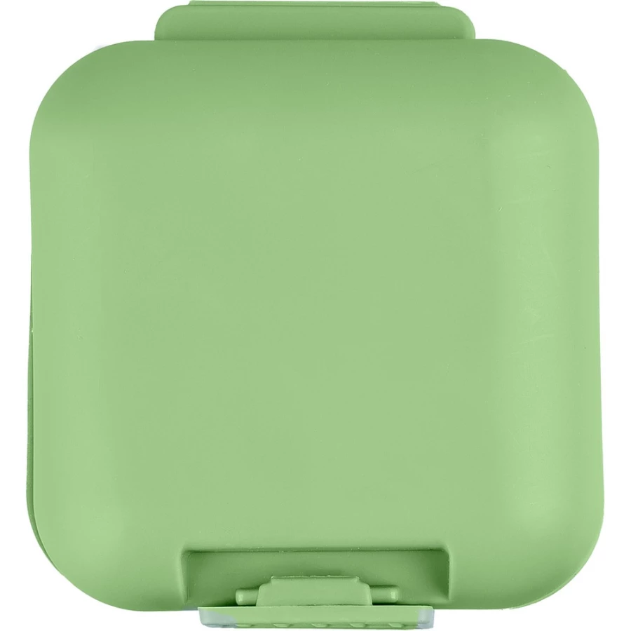 Pojemnik na tabletki z 5 oddzielnymi przegródkami, każda z osobną pokrywką, posiada zamknięcie na zatrzask dla bezpiecznego przechowywania, produkt wykonany z plastiku