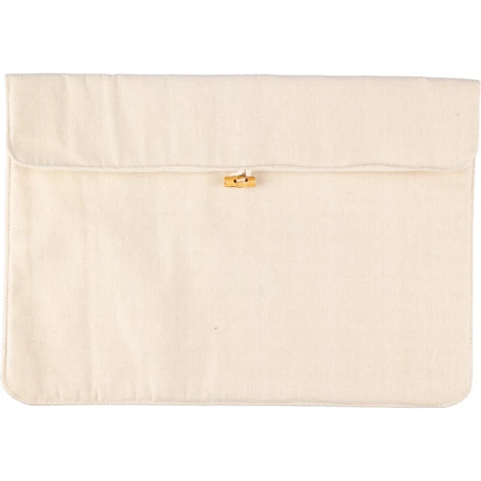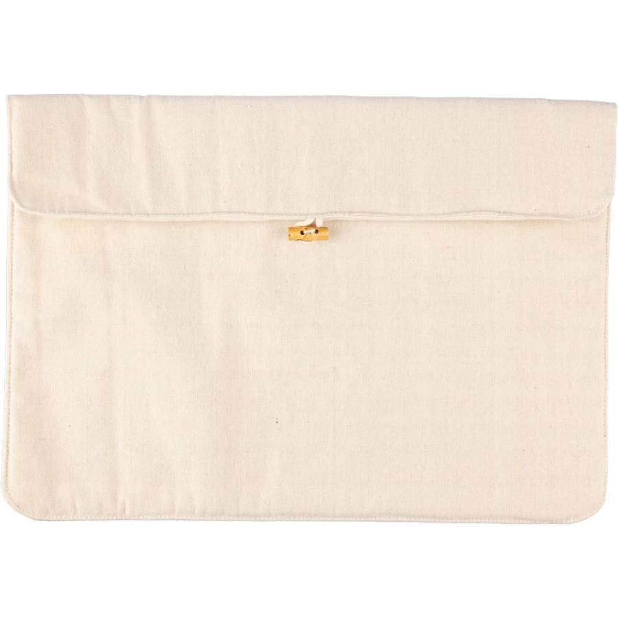 Pokrowiec na laptopa 15", pomaga uniknąć zabrudzeń i kurzu, minimalistyczny design, estetyczny sposób na przechowywanie laptopa, notatek lub podręczników do nauki, z bambusowym elementem i sznurkowym zapięciem, produkt wykonany z bawełny 220 gr/m²
