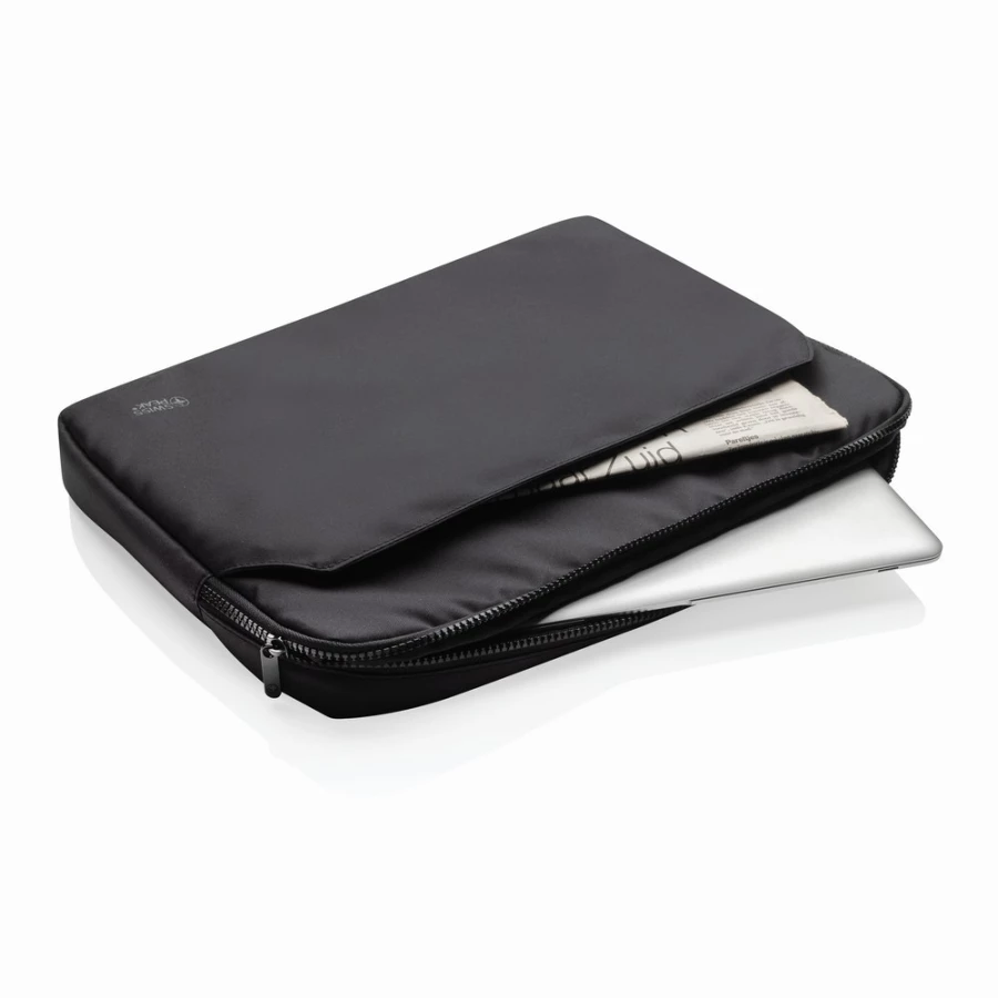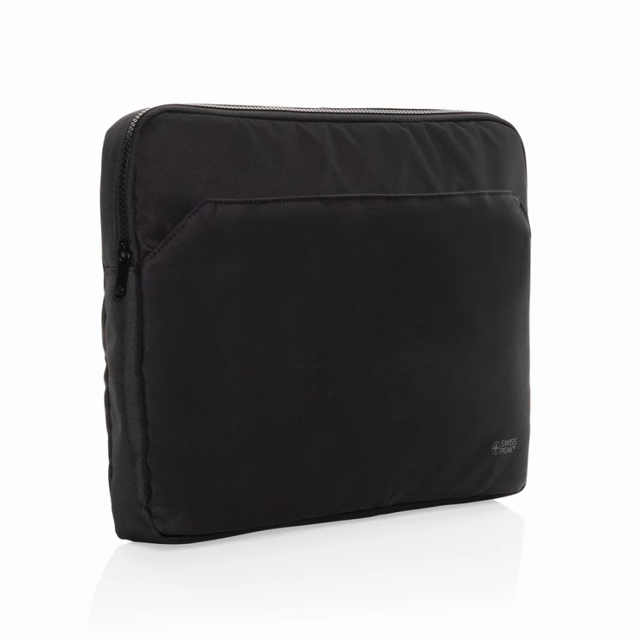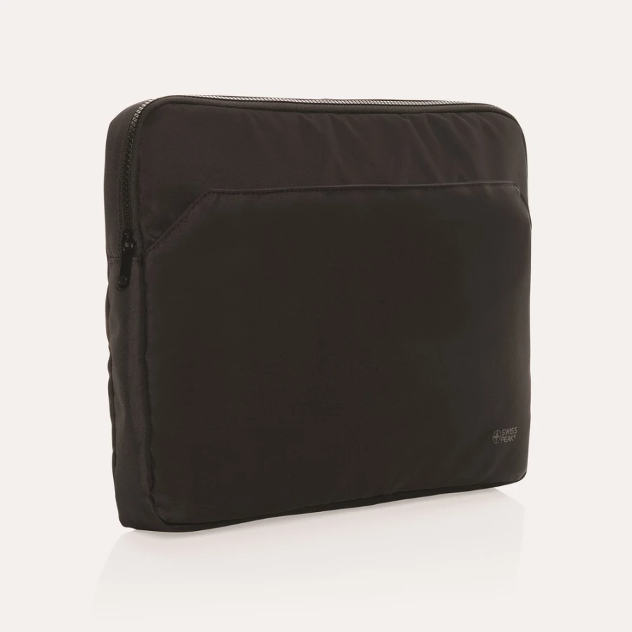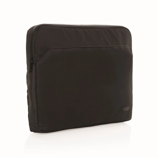 Pokrowiec na laptopa 15,6" AWARE™ RPET, wykonany w 100% z recyklingowanego poliestru RPET z podszewką RPET, główna przegroda na laptopa do 15,6", przednia kieszeń na akcesoria, trwałe zamki błyskawiczne Swiss Peak, elegancki i profesjonalny design, bez PVC, 2% dochodu przeznaczone na Water.org