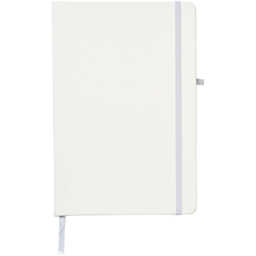 A5 reference size notebook with a matching colour elastic closure, pen loop, and ribbon. Includes 96 sheets of 70g/m2 lined paper. Soft feel PU cover.