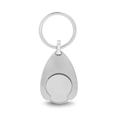 Metalowy brelok z monetą do wózka w supermarkecie. Dostarczane w eleganckim pudełku z papieru pakowego. Pierścień: ø 30 mm | Produkt: 40 x 30 x 4 mm | Moneta: ø 30 mm | Łącznik: 5 x 13 mm | Razem: 75 x 30 x 4 mm | Torba: 100 x 55 mm