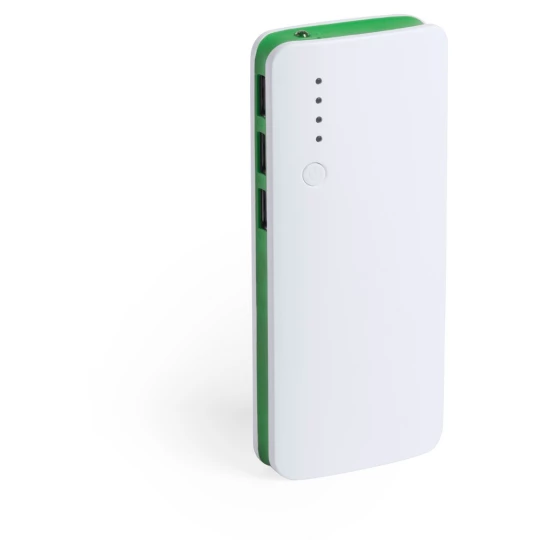 Power bank 10000 mAh, możliwość ładowania trzech urządzeń jednocześnie, 4 diody wskazujące poziom naładowania, 1 lampka LED, 3 wyjścia USB 5V/2.1A, wejście micro USB 5V/2.1A, kabel nie jest dołączony