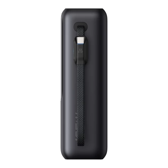 Power bank 25000 mAh, moc ładowania do 165W, wbudowany wyświetlacz, 2 zintegrowane kable USB-C, wyjście/wejście USB-C, wyjście USB, możliwość ładowania do 4 urządzeń jednocześnie