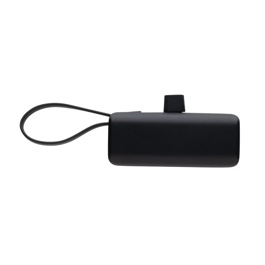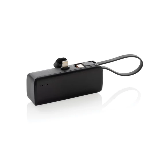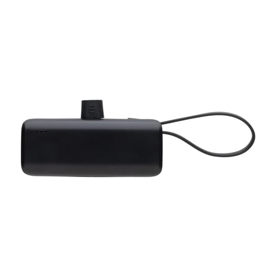 Power bank 3000 mAh, zintegrowany kabel USB C (wejście/wyjście), wyjście iOS, wykonany z ABS i TPE z recyklingu z certyfikatem RCS, wejście 5V/2.1A, wyjście 5V/2.4A, całkowita zawartość materiałów z recyklingu obliczona w oparciu o wagę całkowitą przedmiotu: 19%, w pudełku z certyfikatem FSC®