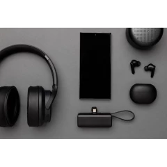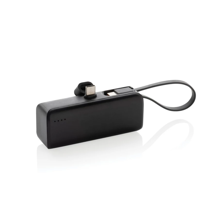 Power bank 3000 mAh, zintegrowany kabel USB C (wejście/wyjście), wyjście USB typu C, wykonany z ABS i TPE z recyklingu z certyfikatem RCS, wejście 5V/2.1A, wyjście 5V/2.4A, całkowita zawartość materiałów z recyklingu obliczona w oparciu o wagę całkowitą przedmiotu: 19%, w pudełku z certyfikatem FSC®