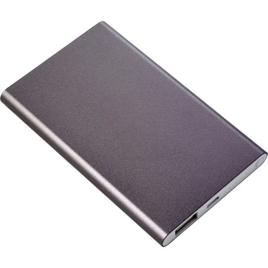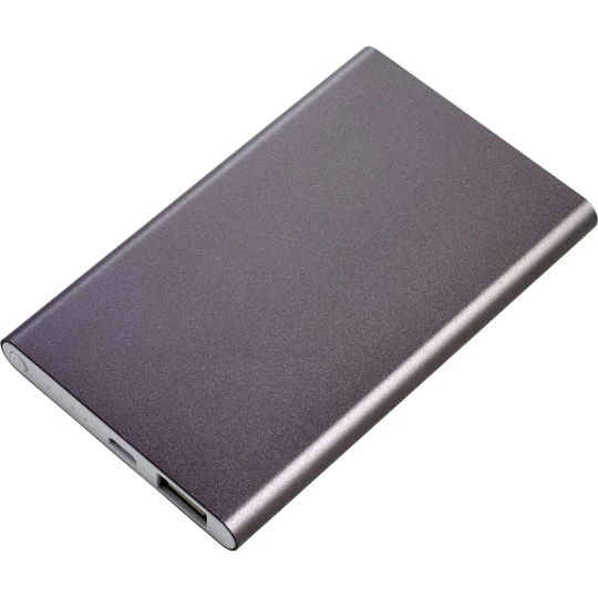 Power bank 4000 mAh z przyciskiem on/off, diody wskazujące poziom naładowania, wejście 5V/1A, wyjście 5V/1A, kabel USB w komplecie