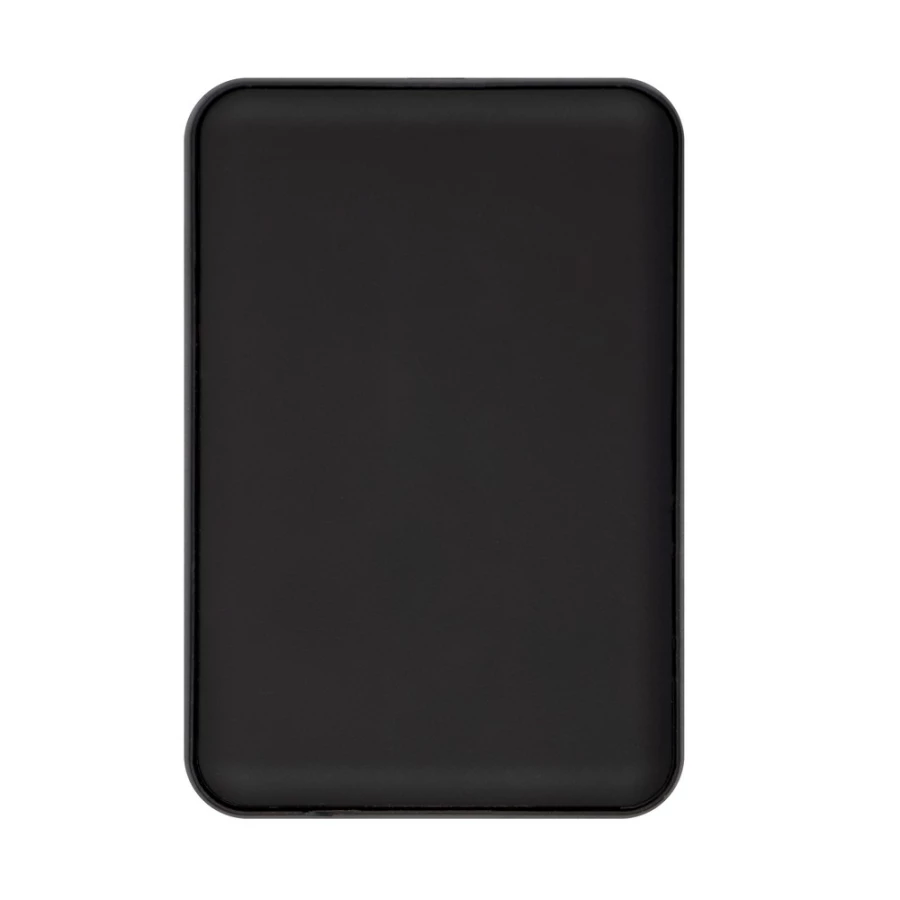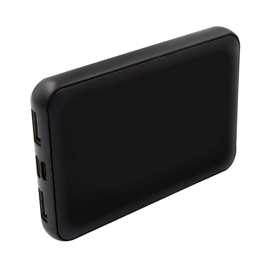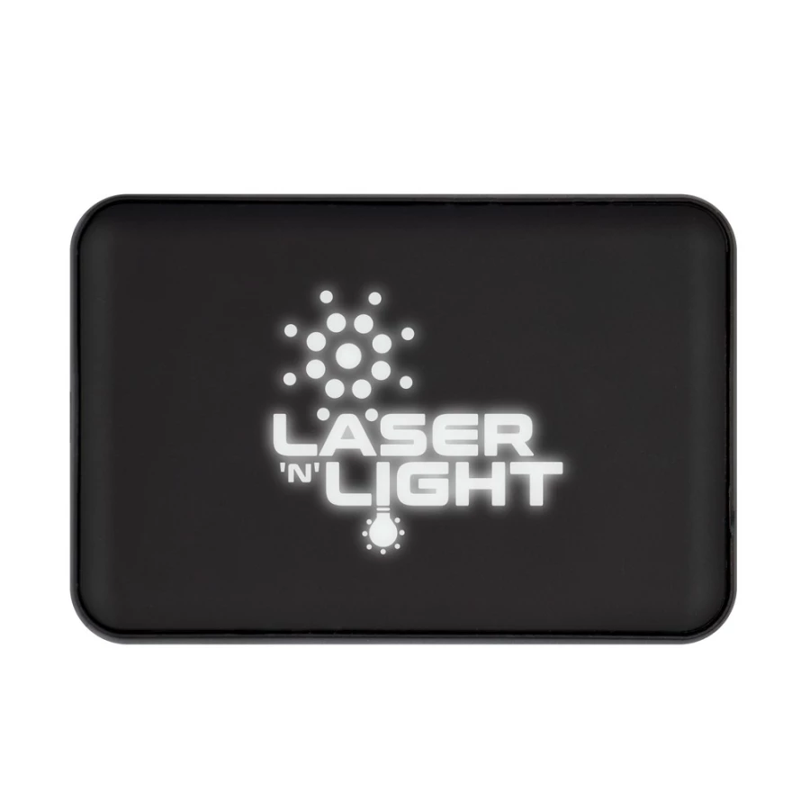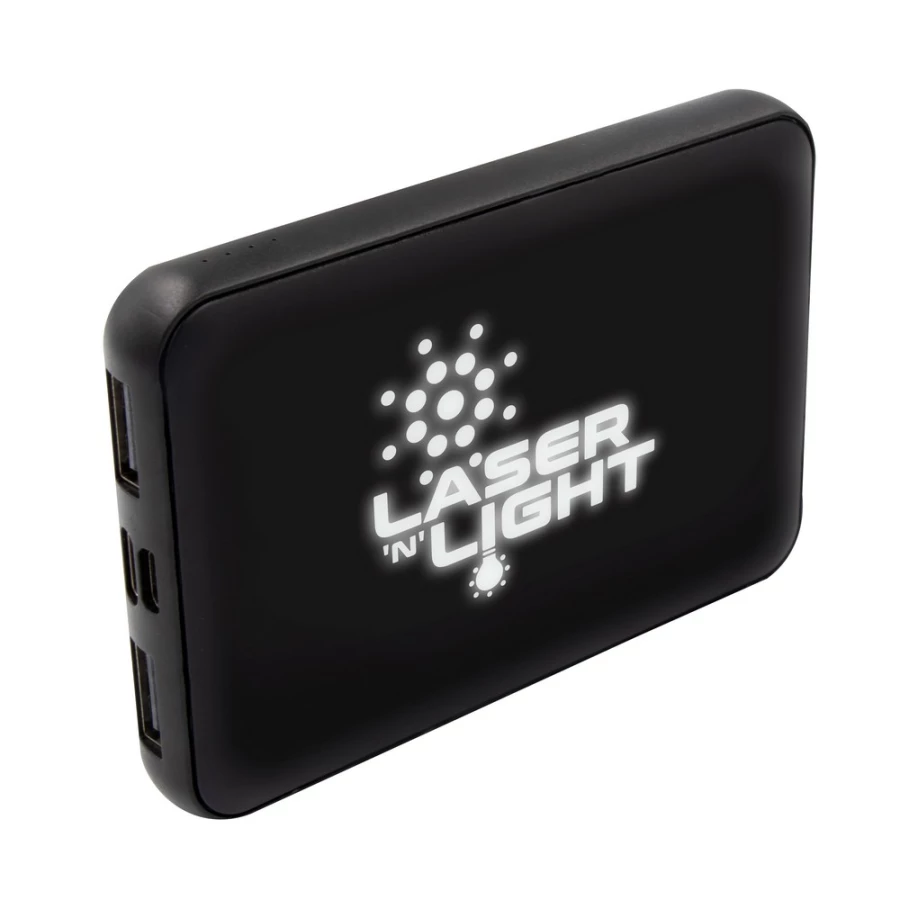 Power bank 5000 mAh wykonany z RPET, grawer ukazuje podświetlaną powierzchnię, 4 diody wskazujące poziom naładowania, 2 wyjścia USB (5V/2A), 2 wejścia (5V/2A): micro USB oraz USB-C, kabel micro USB w komplecie